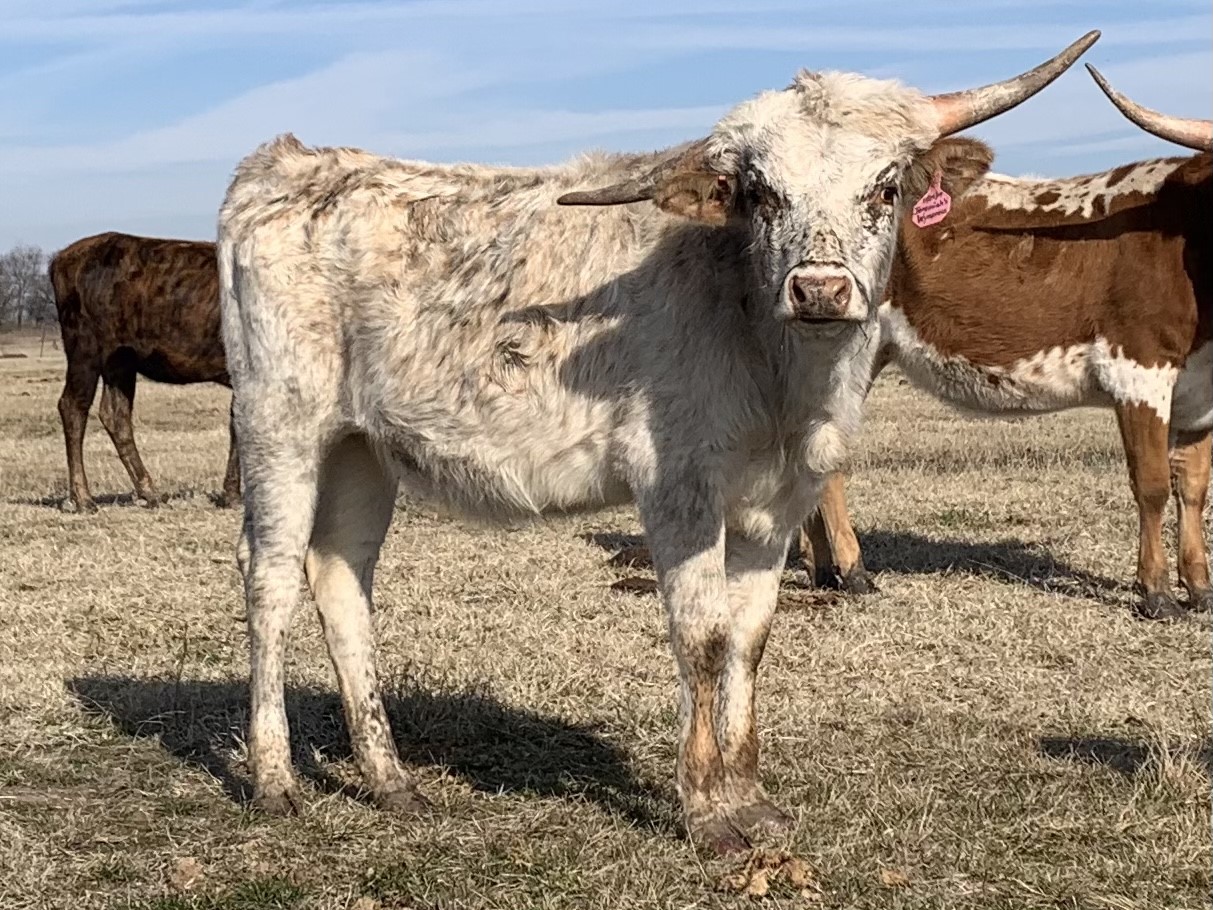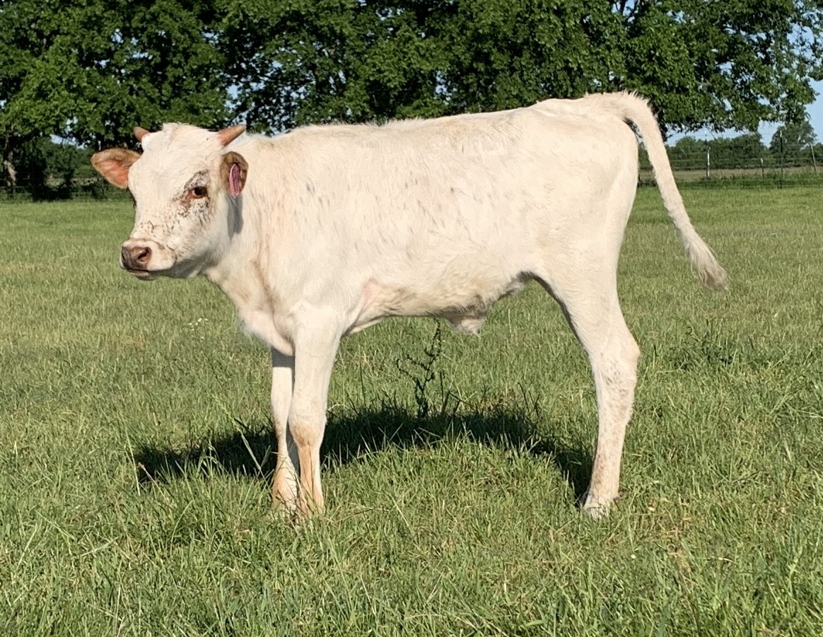 Wynonna is a stunning calf with great conformation and body size sired by Jeremiah 29:11. Jeremiah has won multiple Futurities and was the 2018 Horn Showcase winner along with being awarded the “Superior Bull Award” in 2018 and 2019, the only bull in his class to obtain that distinction. Jeremiah measured 80.125” TTT @ 30 months and is projecting to 96.62 TTT at maturity.