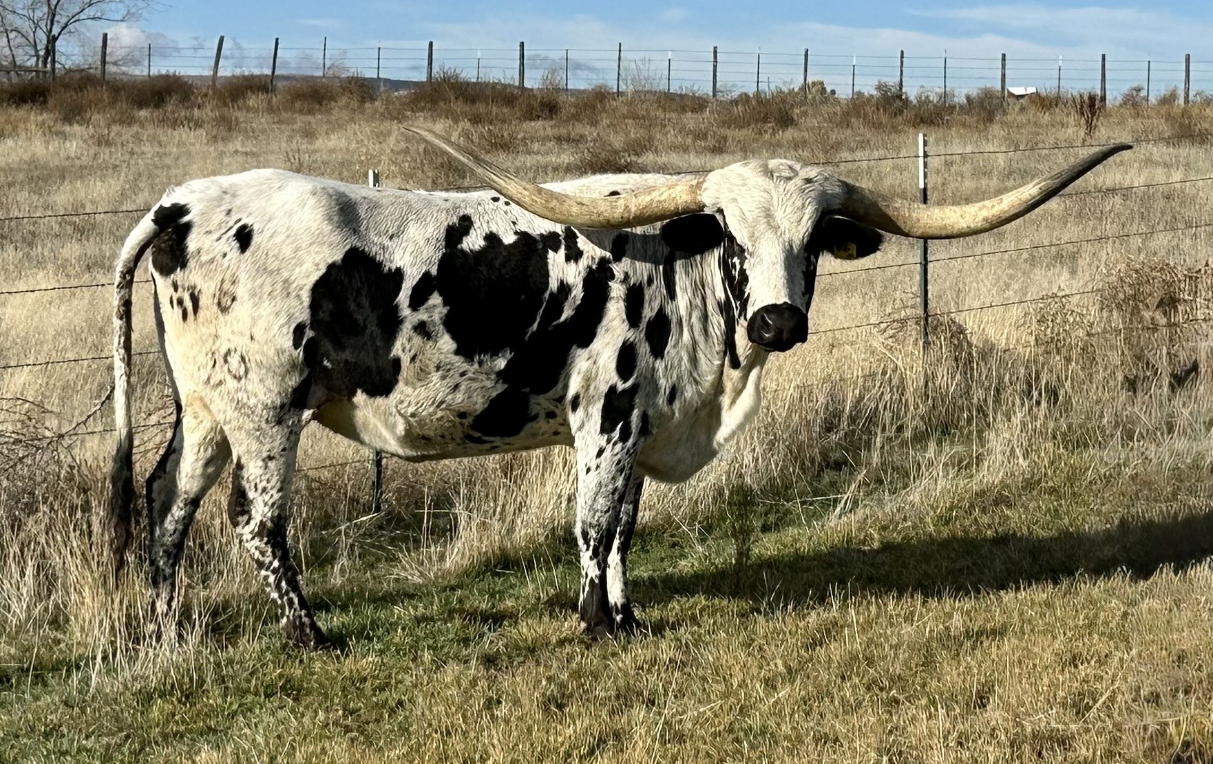 Gorgeous black and white cow bred to BR Jungle Jim for 2026. Kid Rock bull calf at side.