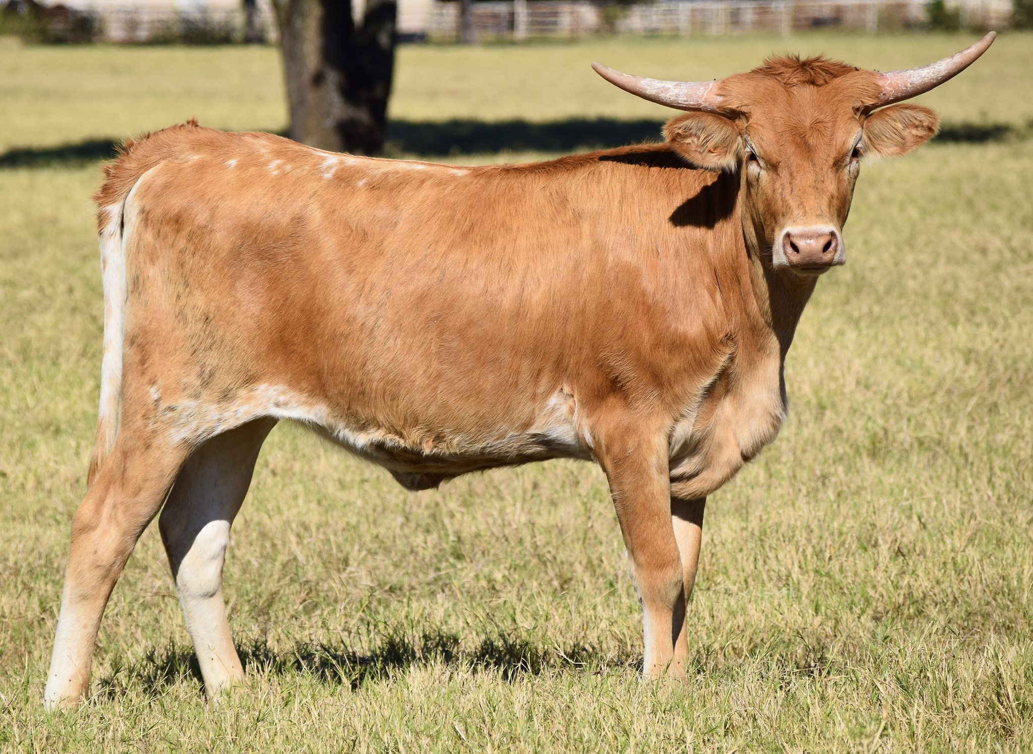 We are predicting a dramatic transformation for this little heifer in the next 2 years. The twisting horns are in the works and brindle striping is beginning to show. She will be a show stopper, just like her mama.