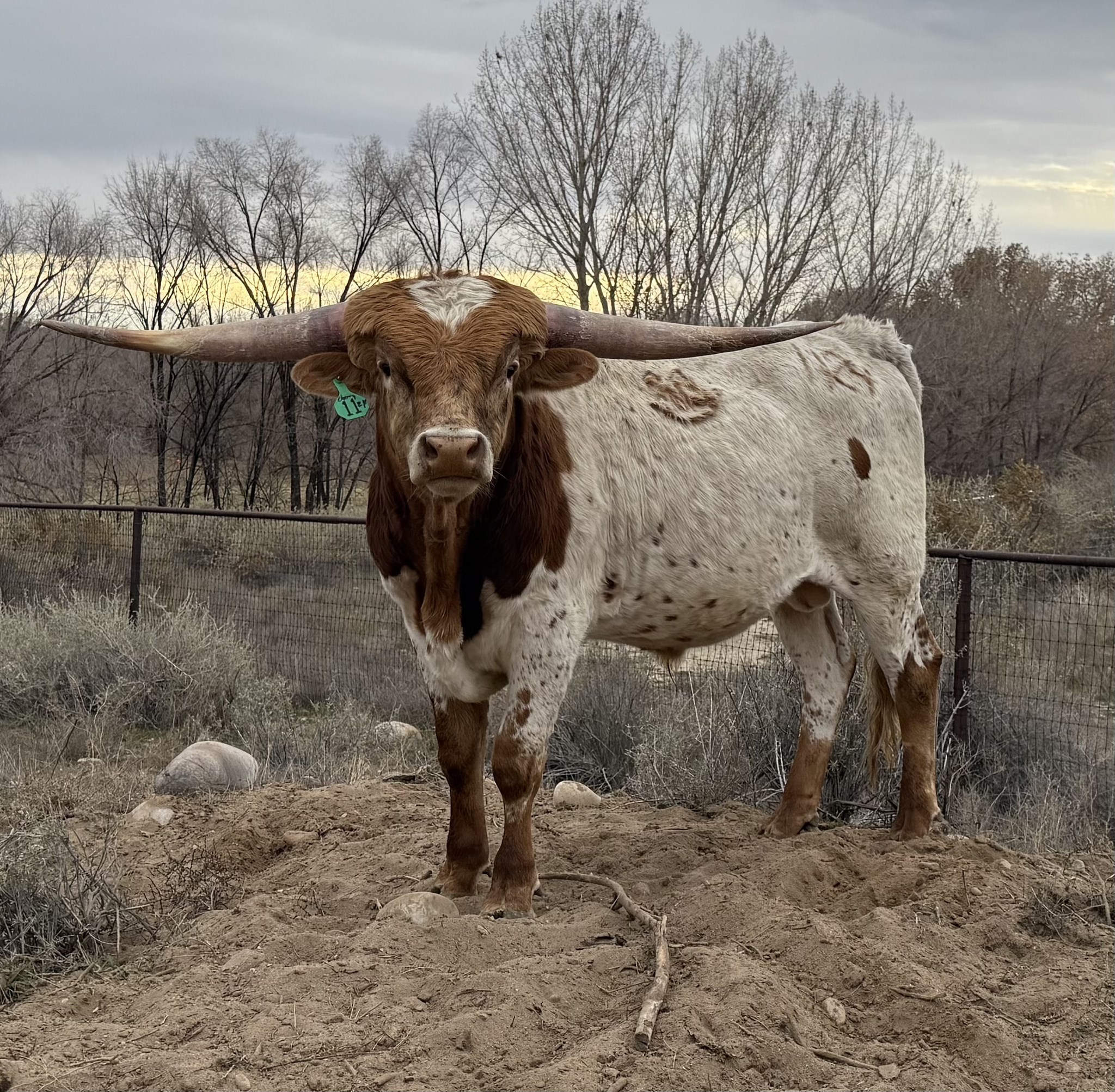 He is a very lateral horned bull with an impeccable pedigree. The 4SS partnership was retaining him and watching him grow into a herd sire and we have decided he will be a great one. He is now offered to the public. 66.5” TTT at 22 months.