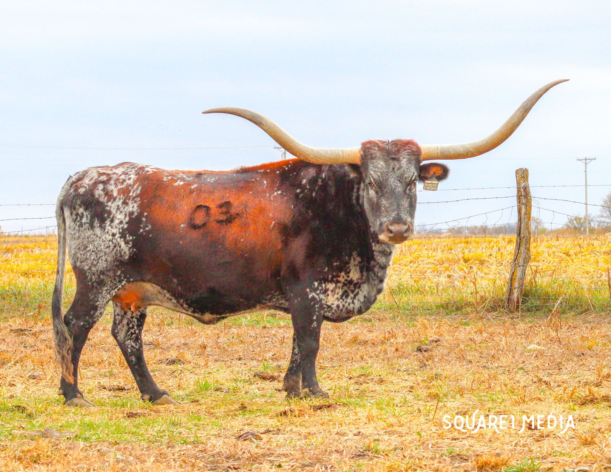 Patsy has it all. Deep body, pretty horn set and a beautiful purple roan color. Eats cubes from your hands. Great mother with a perfect bag.