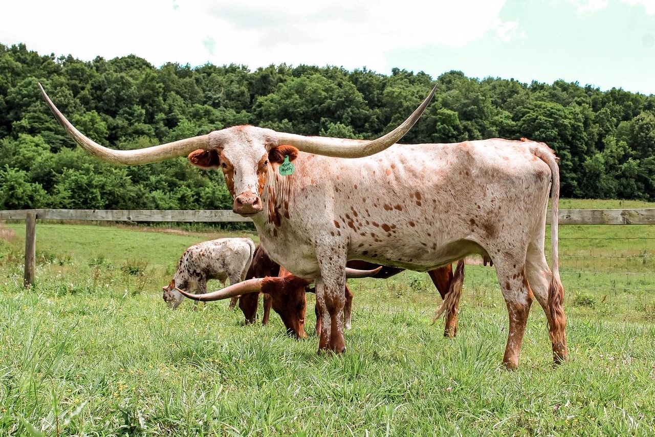 Big bodied Sittin Bull daughter with 87.25” TTT & 110.5” total horn! Great producer, great mother, everything a Texas Longhorn should be!