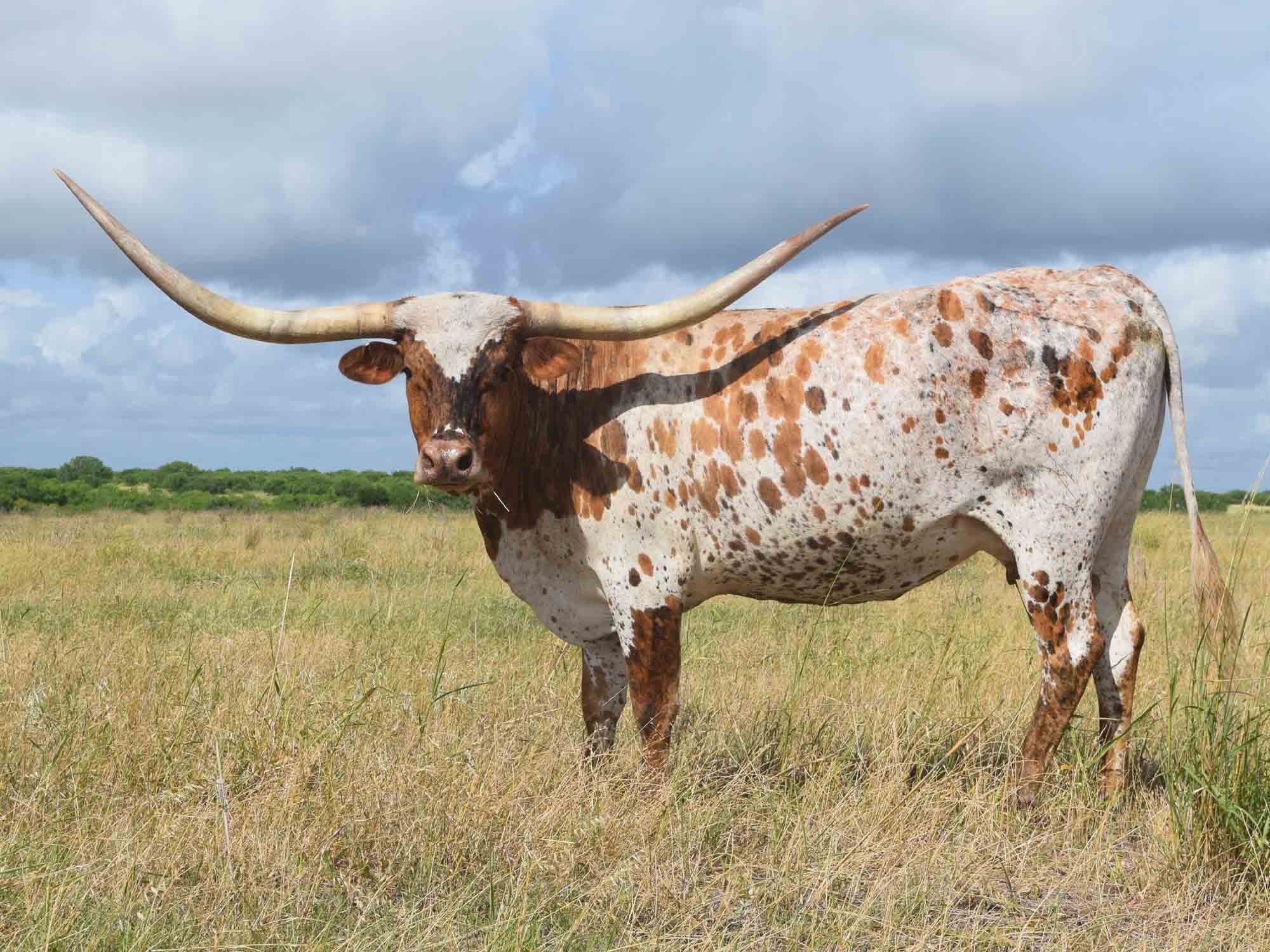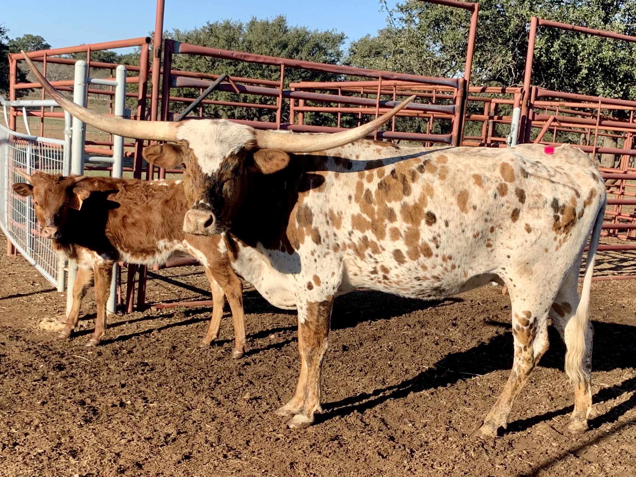 Becca is our matriarch. She's big bodied and colored up. Mid 80s TTT and still growing. Sweet, productive and flashy. Pedigree highlights: JBM Becca II (94.75TTT), Cowboy Tuff Chex (106.75TTT), JP Rio Grande, Jamakizm.